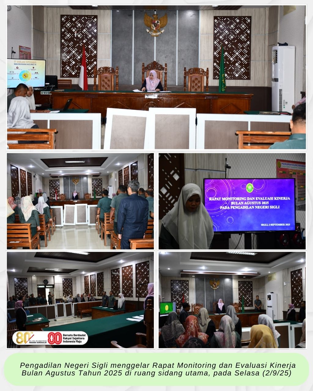 Sigli – Pengadilan Negeri Sigli menggelar Rapat Monitoring dan Evaluasi Kinerja Bulan Agustus Tahun 2025 di ruang sidang utama, pada Selasa (2/9/25).