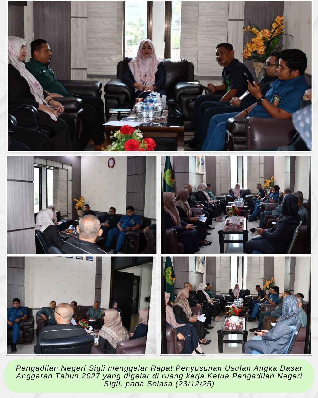 Sigli – Selasa (23/12/25) Pengadilan Negeri Sigli menggelar Rapat Penyusunan Usulan Angka Dasar Anggaran Tahun 2027 yang digelar di ruang kerja Ketua Pengadilan Negeri Sigli.