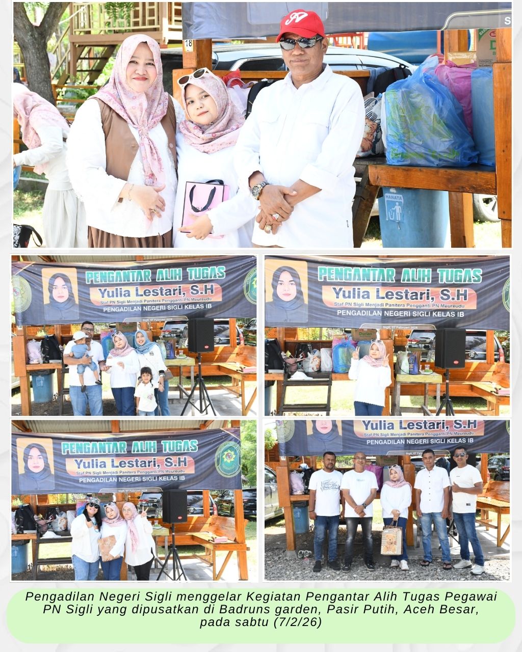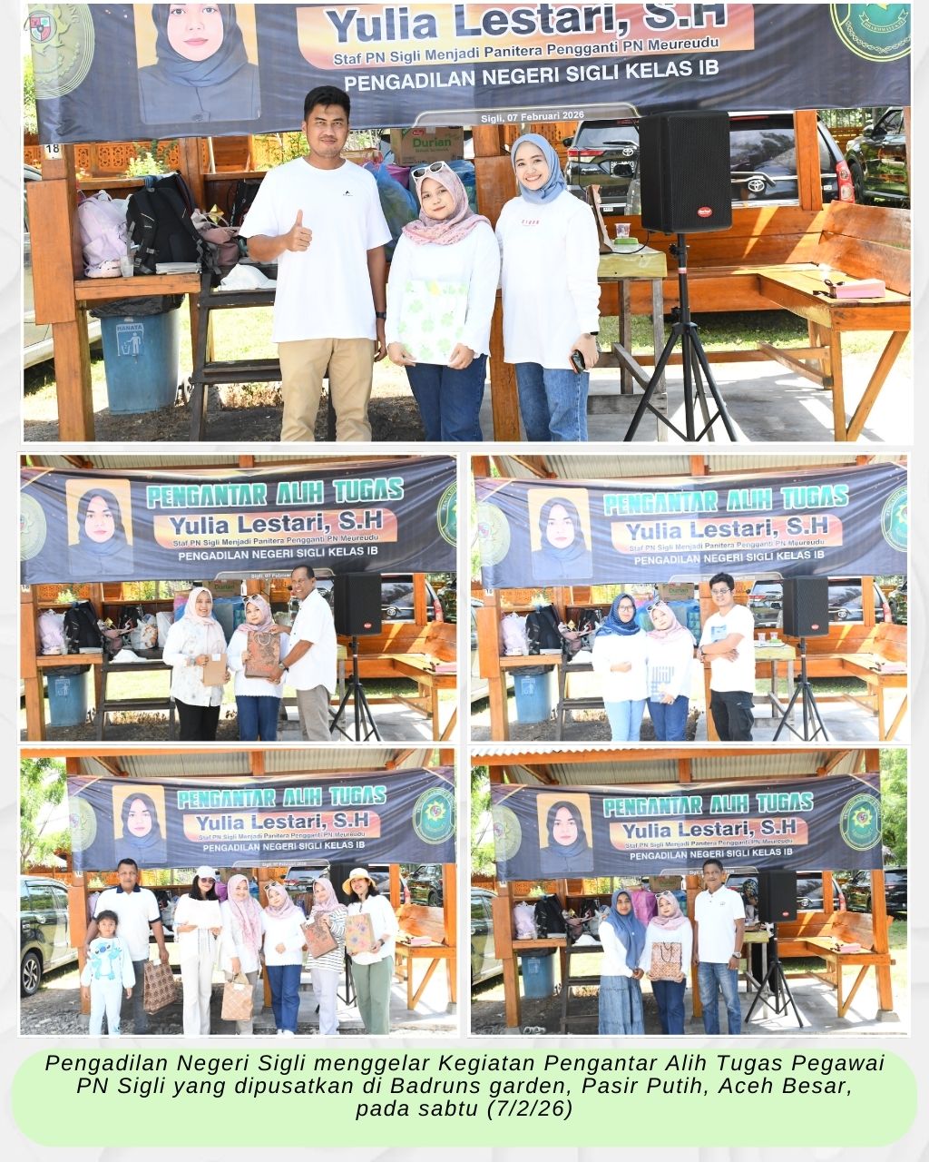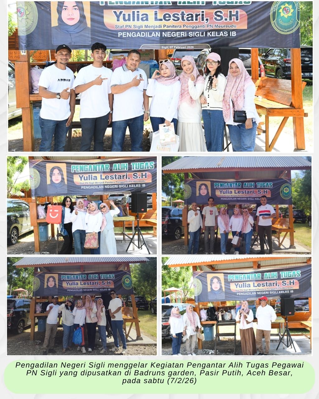 Aceh Besar – Sabtu (7/2/26), Pengadilan Negeri Sigli menggelar Kegiatan Pengantar Alih Tugas Pegawai PN Sigli yang dipusatkan di Badruns garden, Pasir Putih, Aceh Besar.