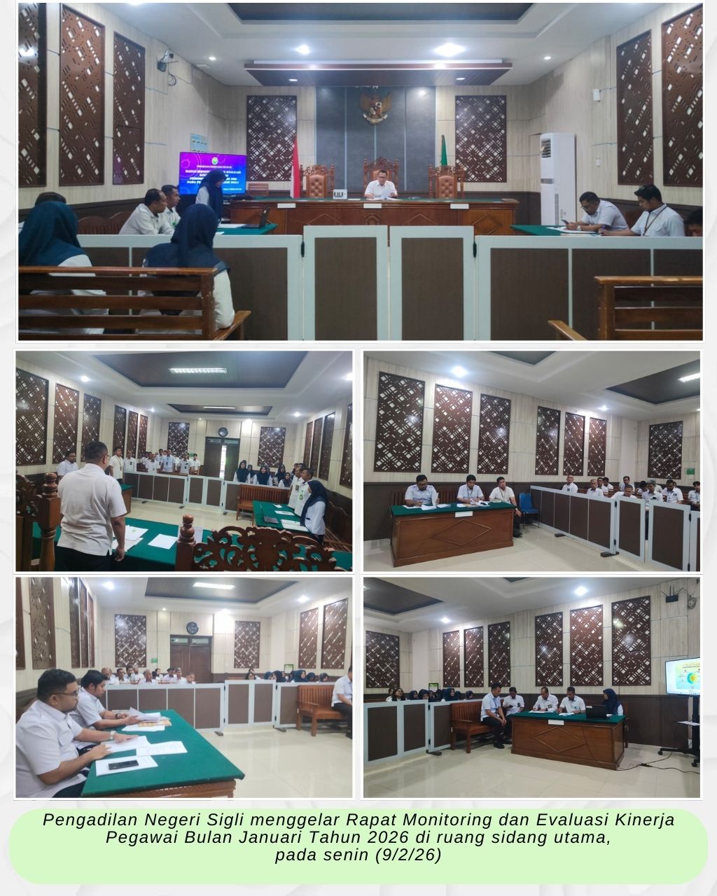 Sigli – Pengadilan Negeri Sigli menggelar Rapat Monitoring dan Evaluasi Kinerja Pegawai Bulan Januari Tahun 2026 di ruang sidang utama, pada senin (9/2/26).