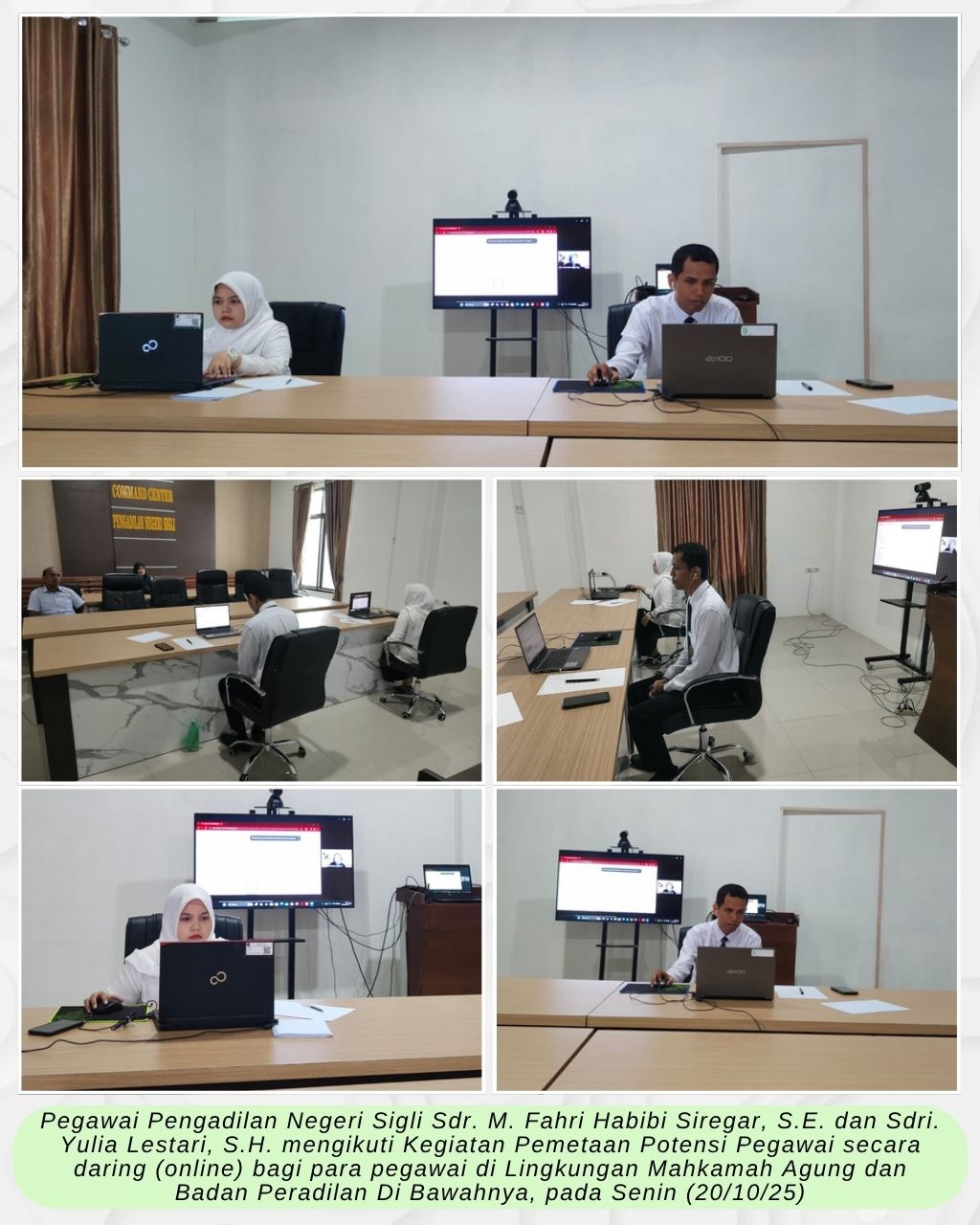 Sigli – Rabu (22/10/2025) Para Pejabat Kepaniteraan Pengadilan Negeri Sigli mengikuti Uji Substansi bagi Panitera Muda Pengadilan Tinggi dan Panitera Muda Pengadilan Negeri di Lingkungan Peradilan Umum yang diadakan secara daring di ruang Command Center PN Sigli.